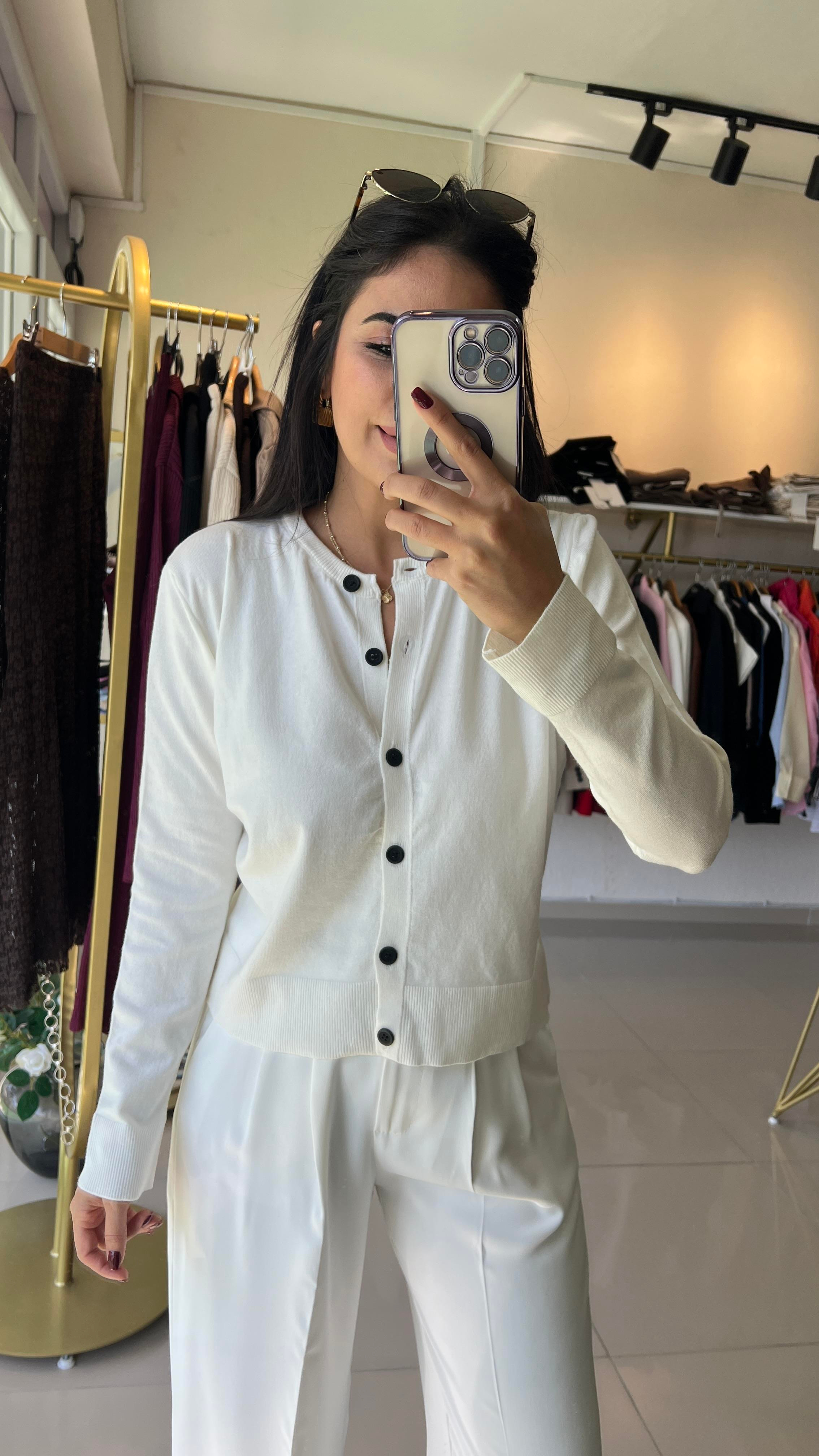 2016 Bisiklet Yaka Yumuşak Massi Hırka BEYAZ