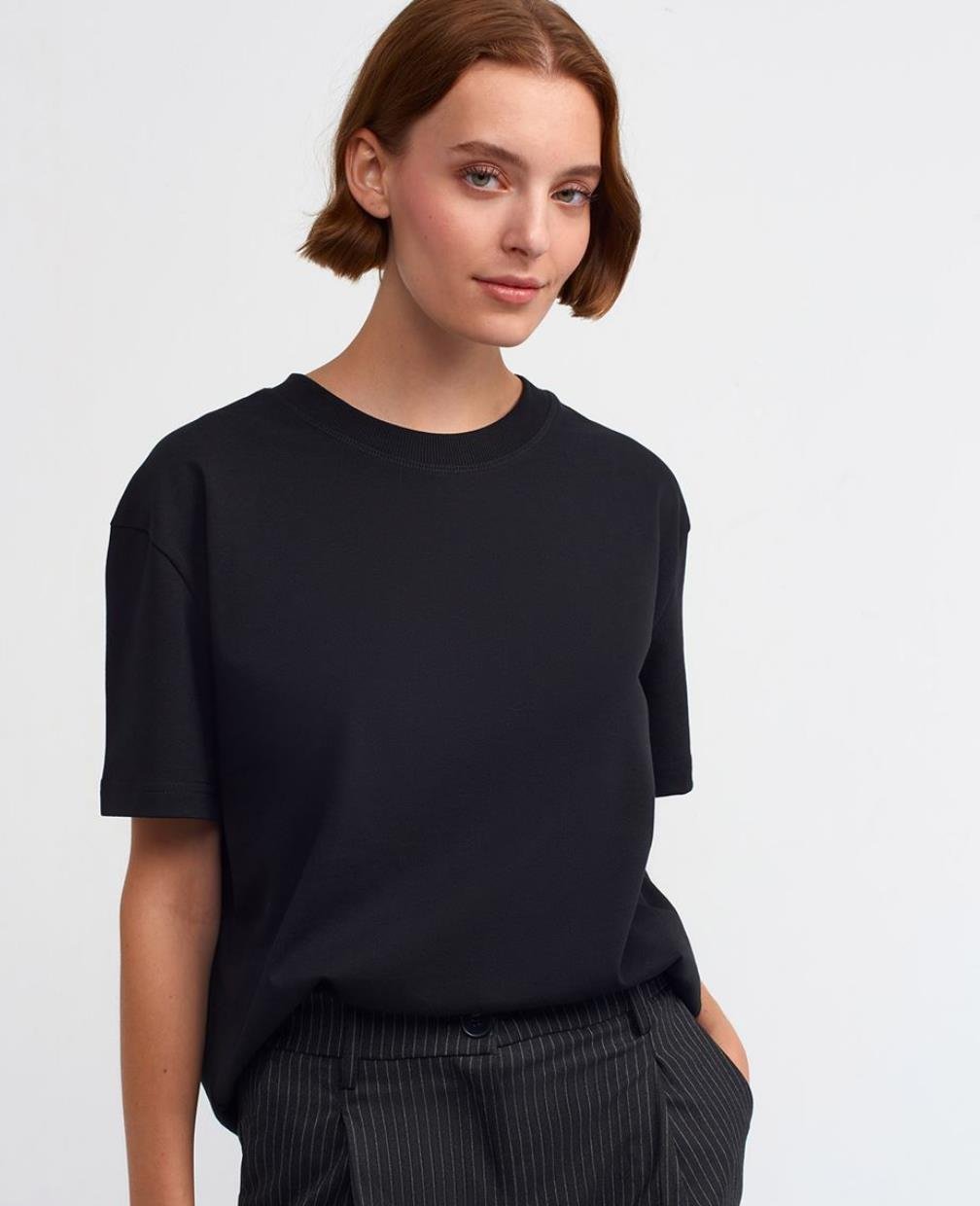 30312 DEKORATİF DİKİŞLİ TSHİRT SİYAH