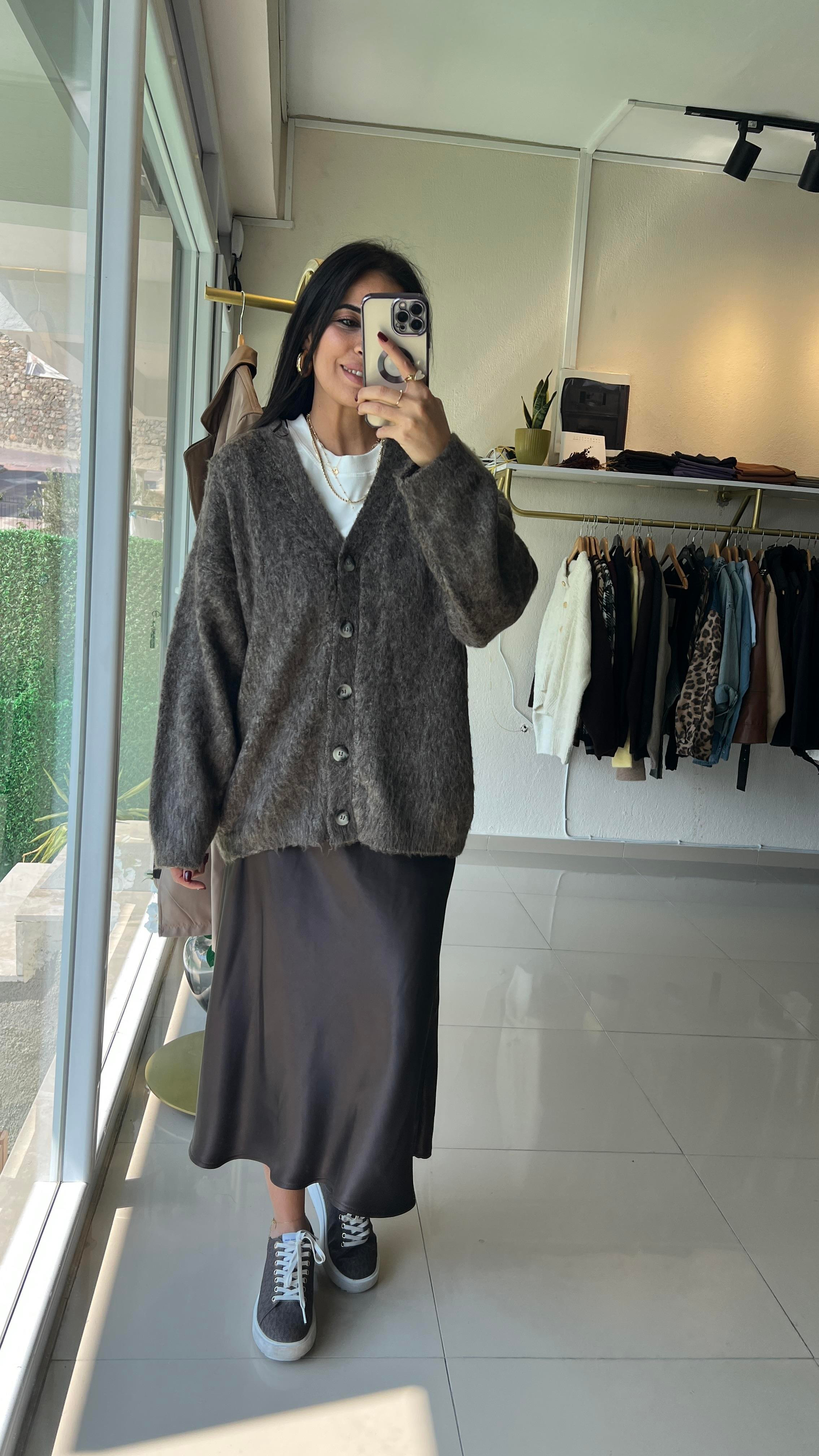 60264 V Yaka Şardonlu Düğmeli Triko Hırka-Kahve