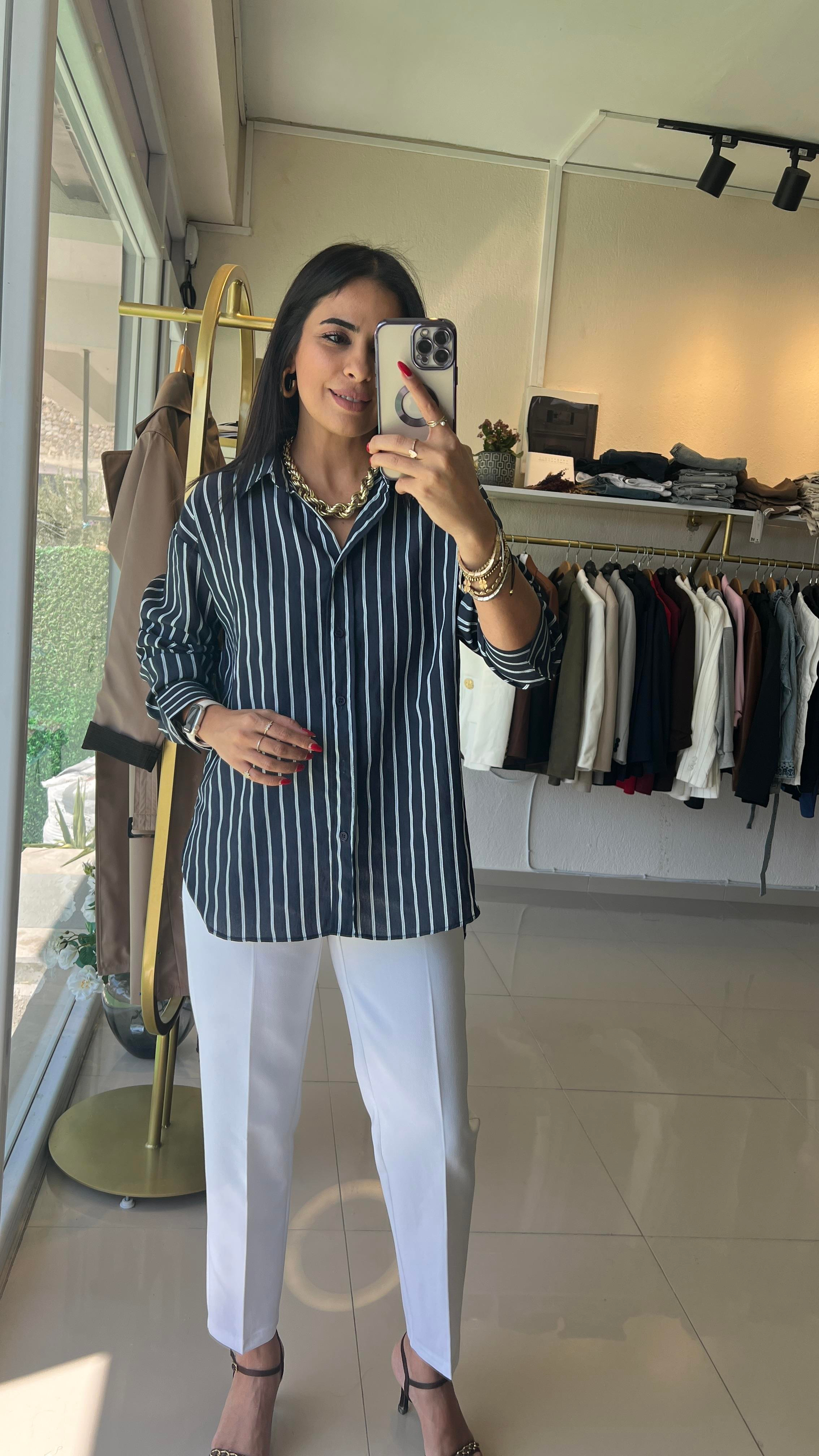 BEYAZ ÇİZGİLİ GÖMLEK LACİVERT