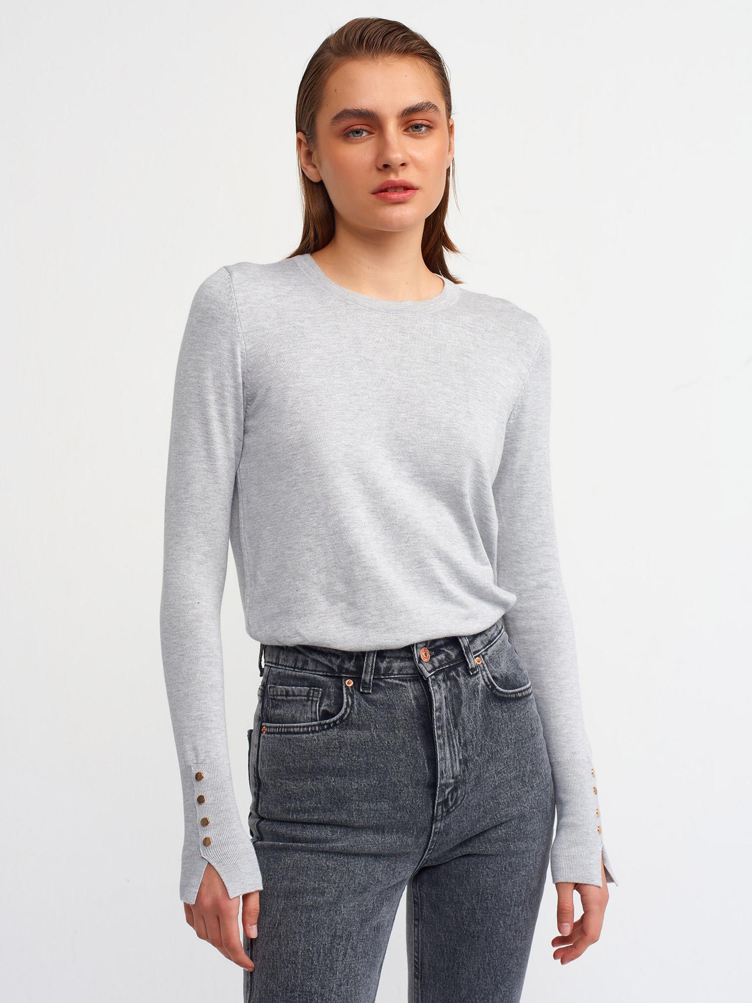 BİSİKLET YAKA DROPLU KAZAK GRİ 1267