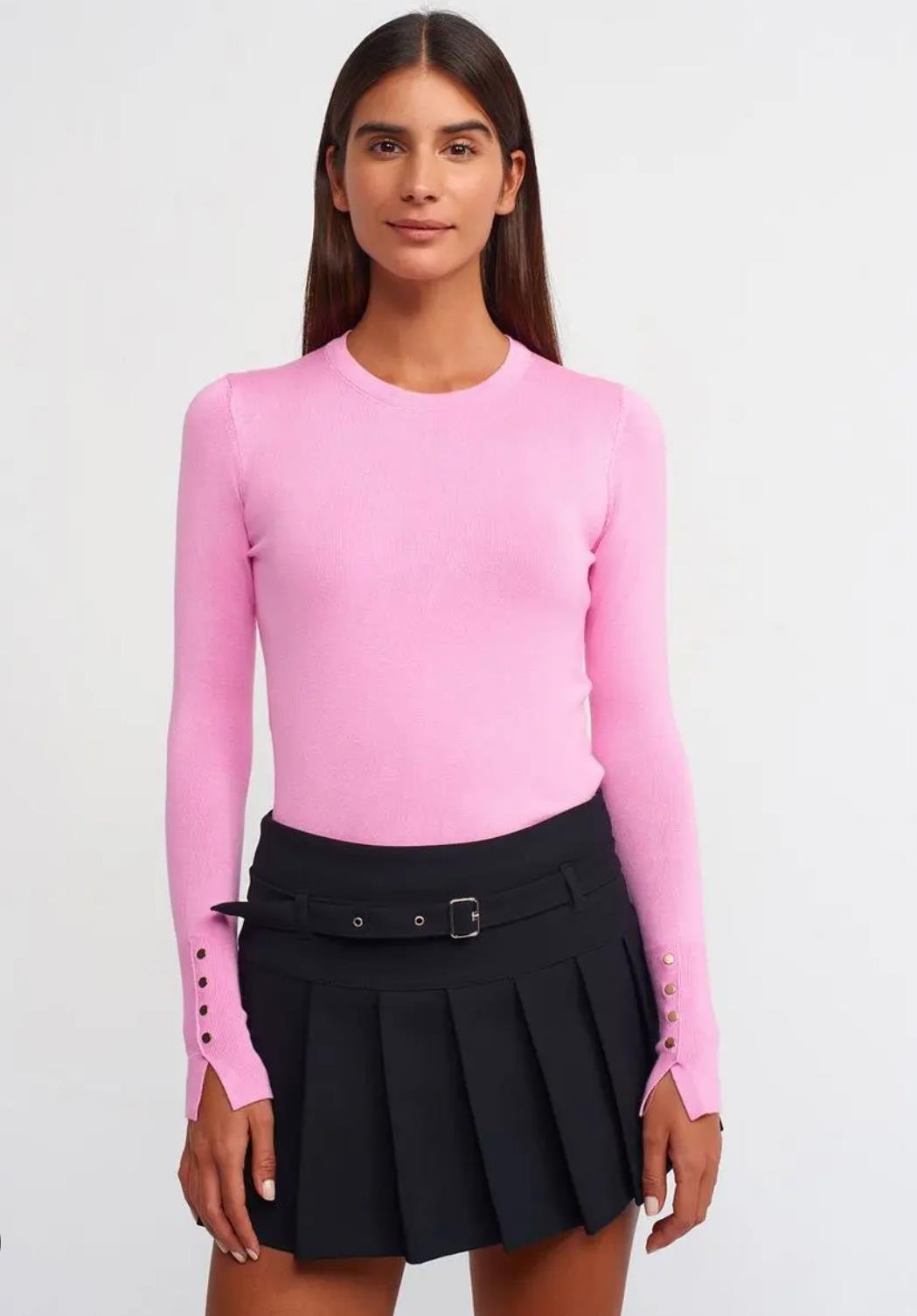 BİSİKLET YAKA DROPLU KAZAK PEMBE 1267
