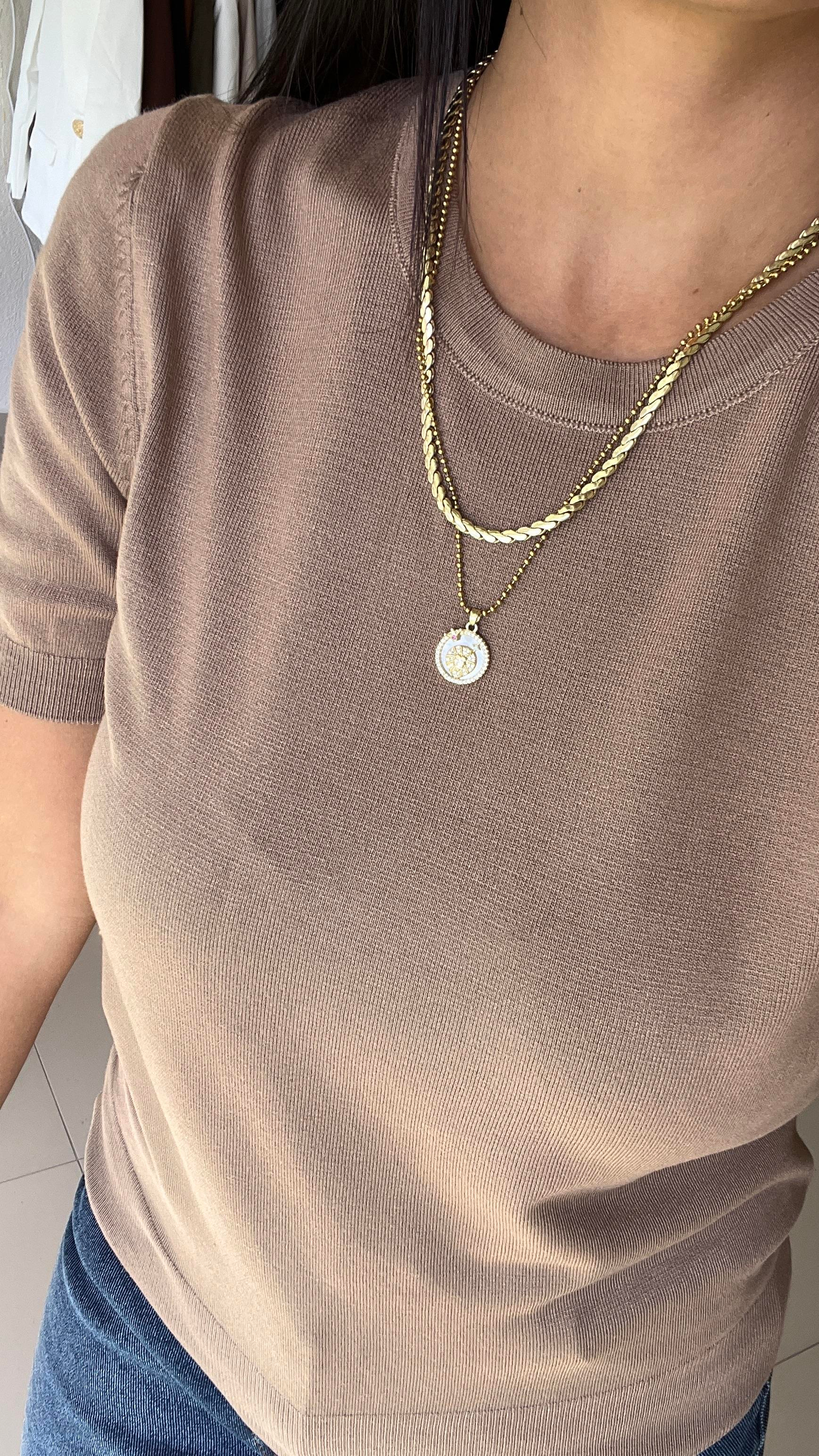 Bisiklet Yaka Kısa Kol Basic Triko Bluz Vizon 10779