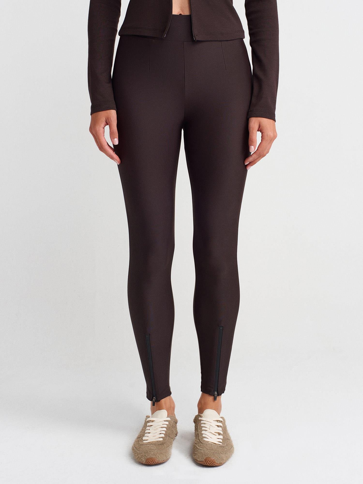 Fermuar Detaylı Tayt-Koyu Kahve 7934
