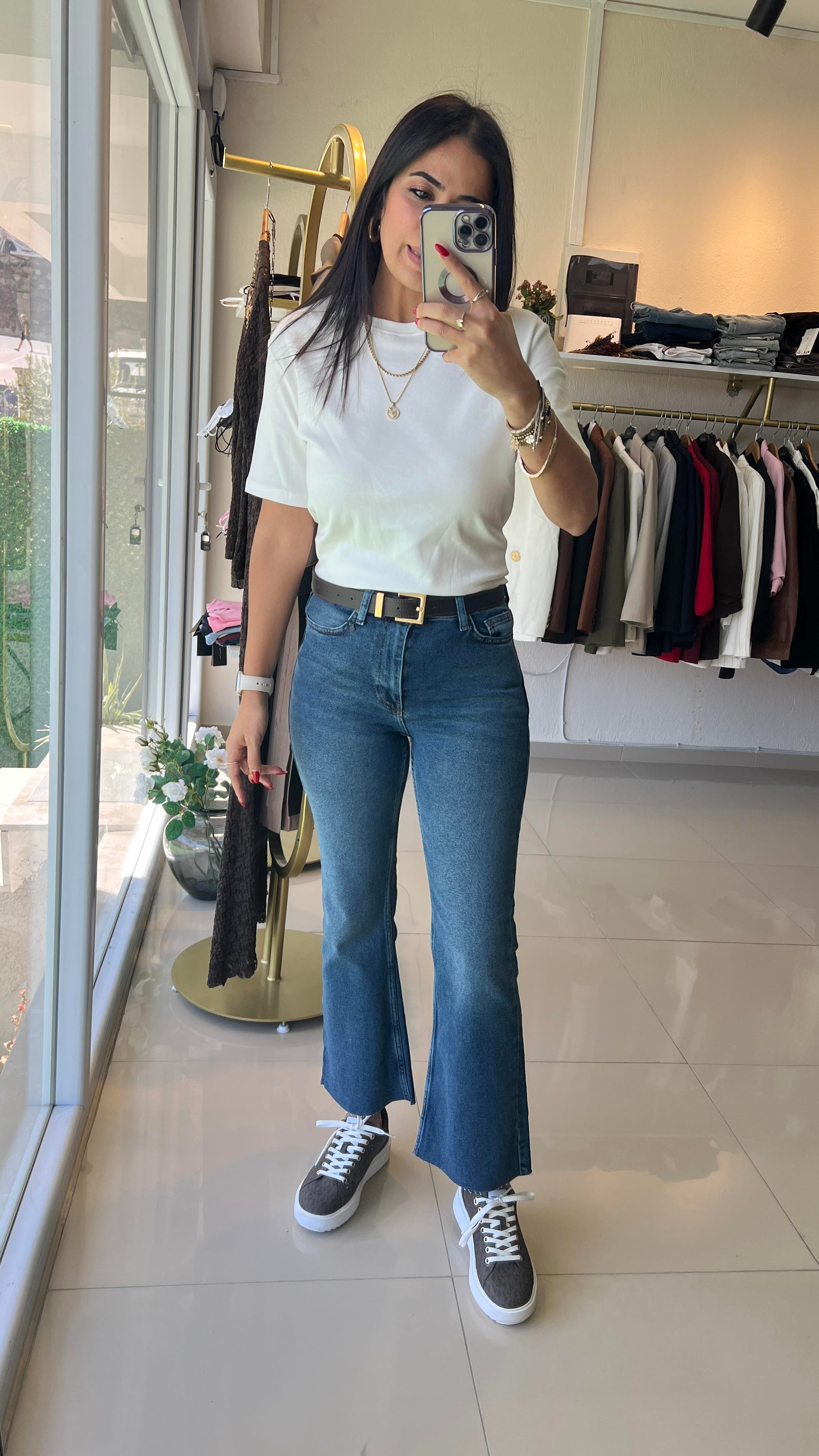 FULL LİKRALI, TOPARLAYICI , YÜKSEK BEL , PAÇASI KESİK ,FLARE JEAN, MAVİ 1706-01