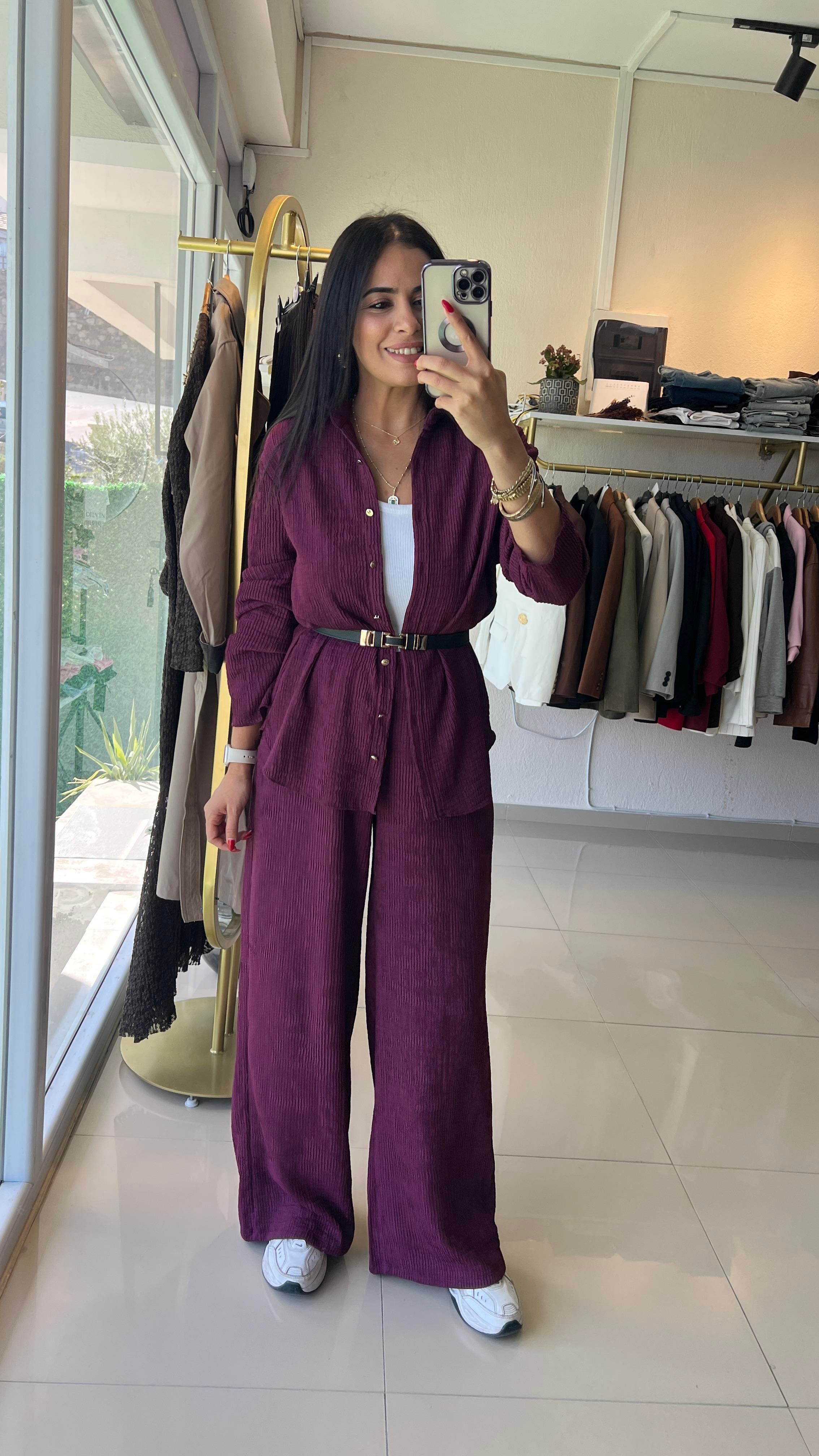 KENDİNDEN PİLİSELİ KRİNKIL KUMAŞ TAKIM VİŞNE ÇÜRÜĞÜ