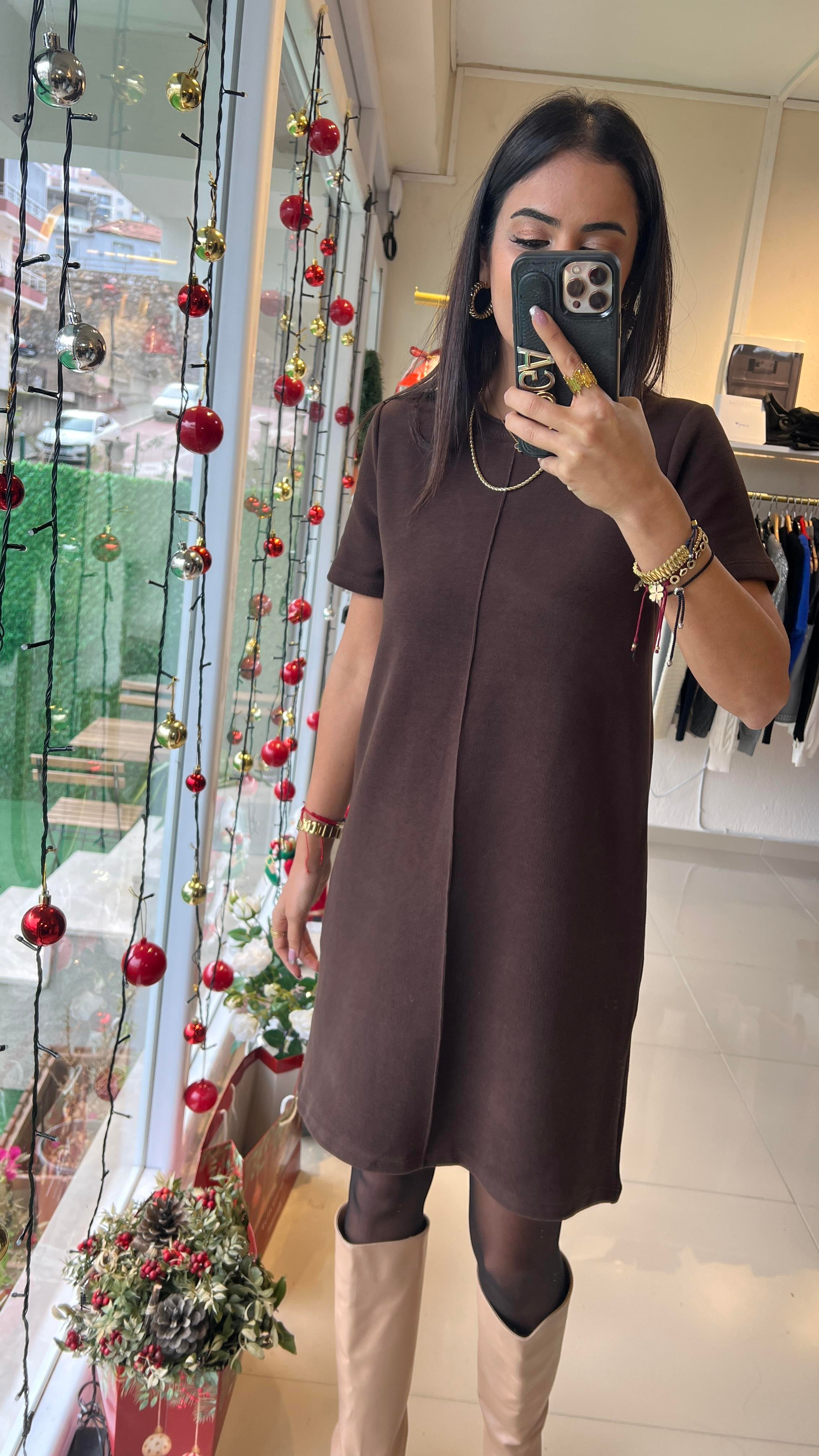 KISA KOL SELANİK KUMAŞ ELBİSE KAHVE 16007