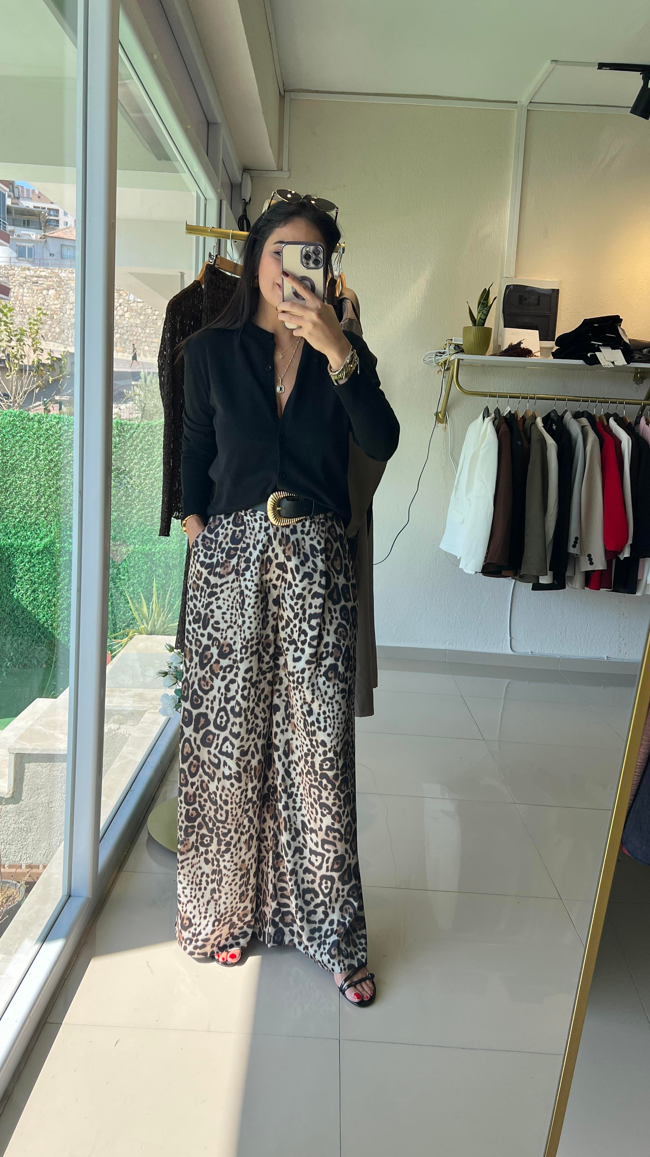 Leopar Desen Kemerli Tok Saten Pantolon 2517460