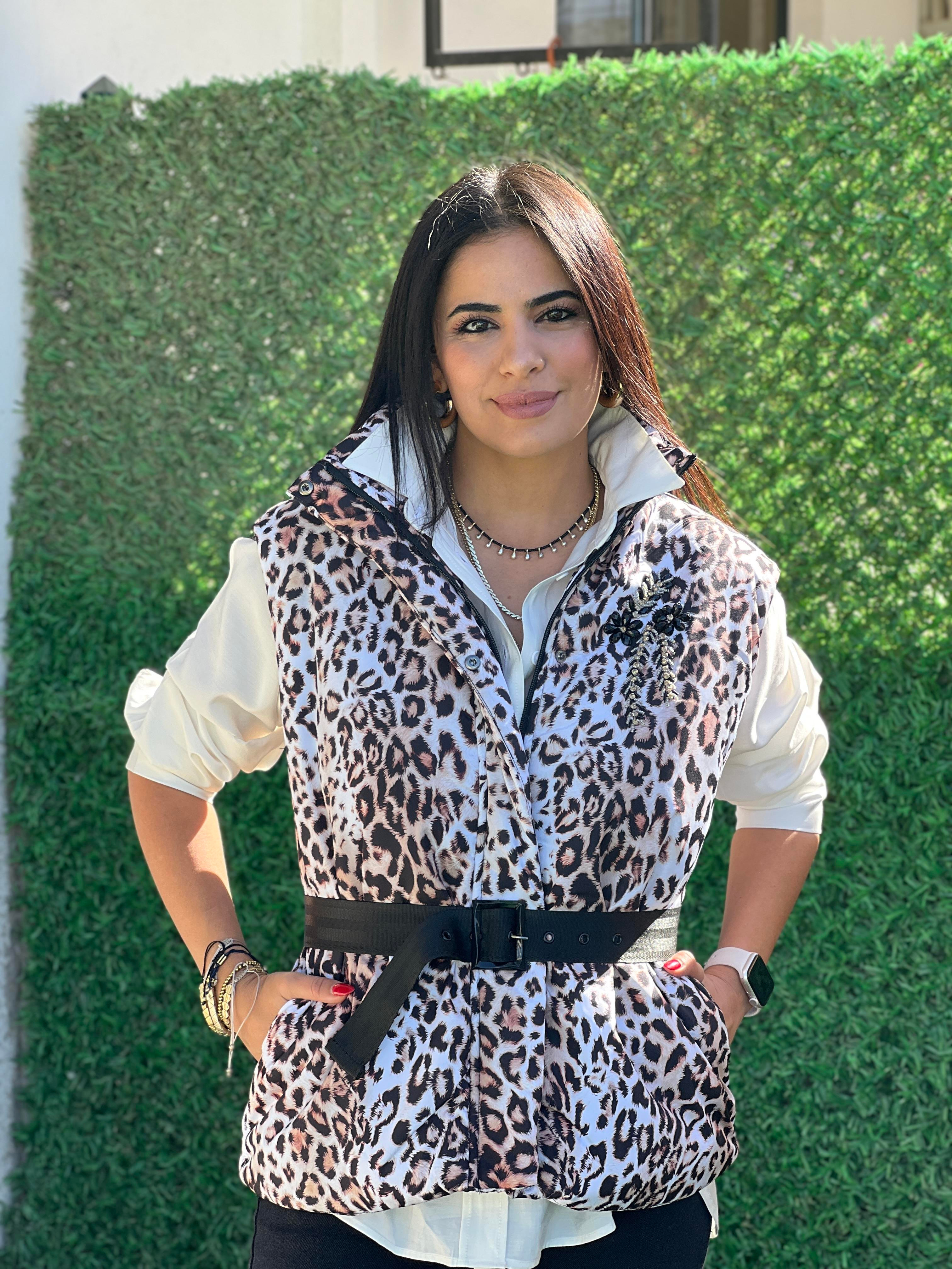 MARKA MODEL TAŞ İŞLEMELİ YELEK LEO DESEN