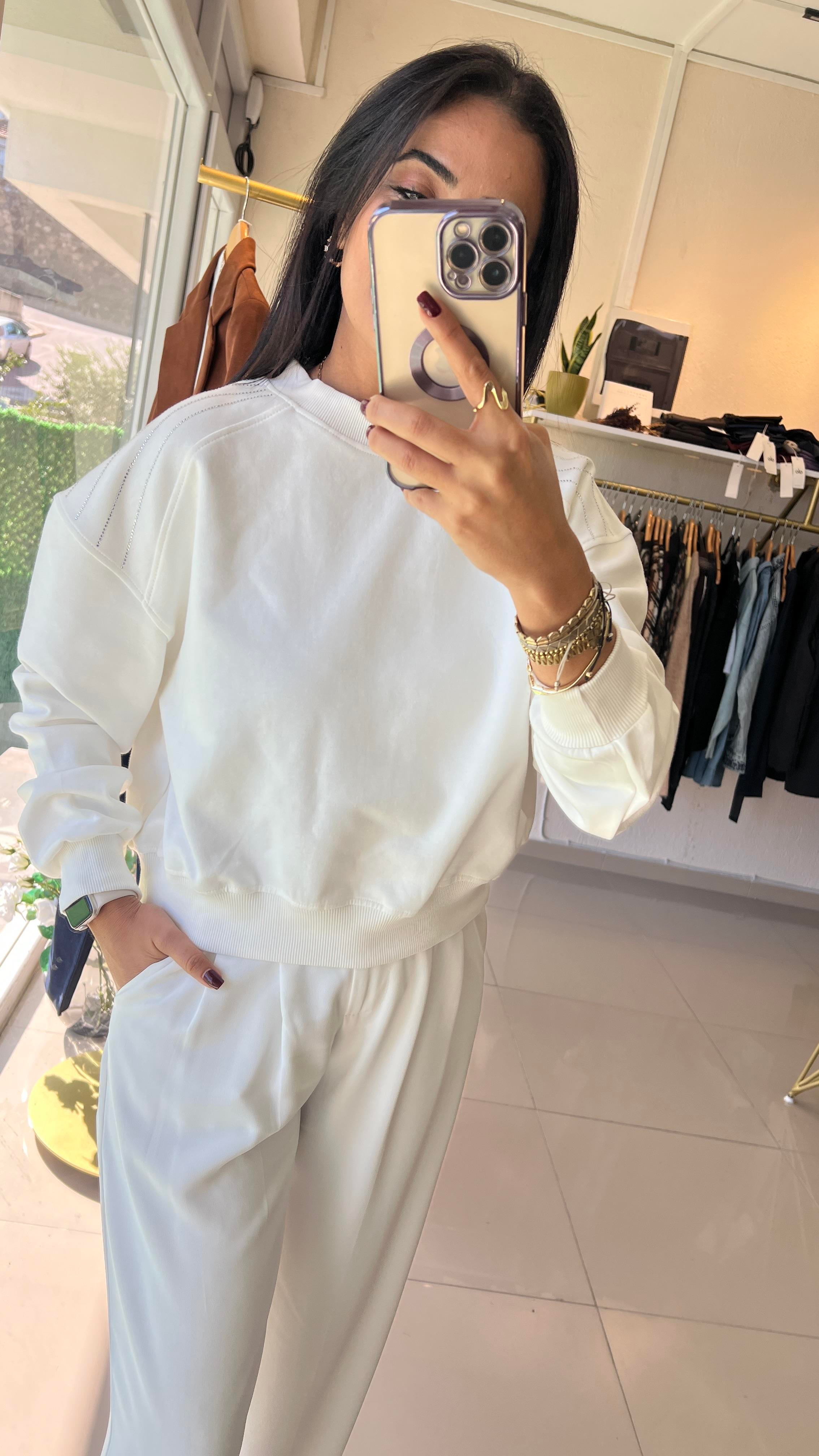 OMUZLARI TAŞLI RİBANALI SWEAT BEYAZ 1071