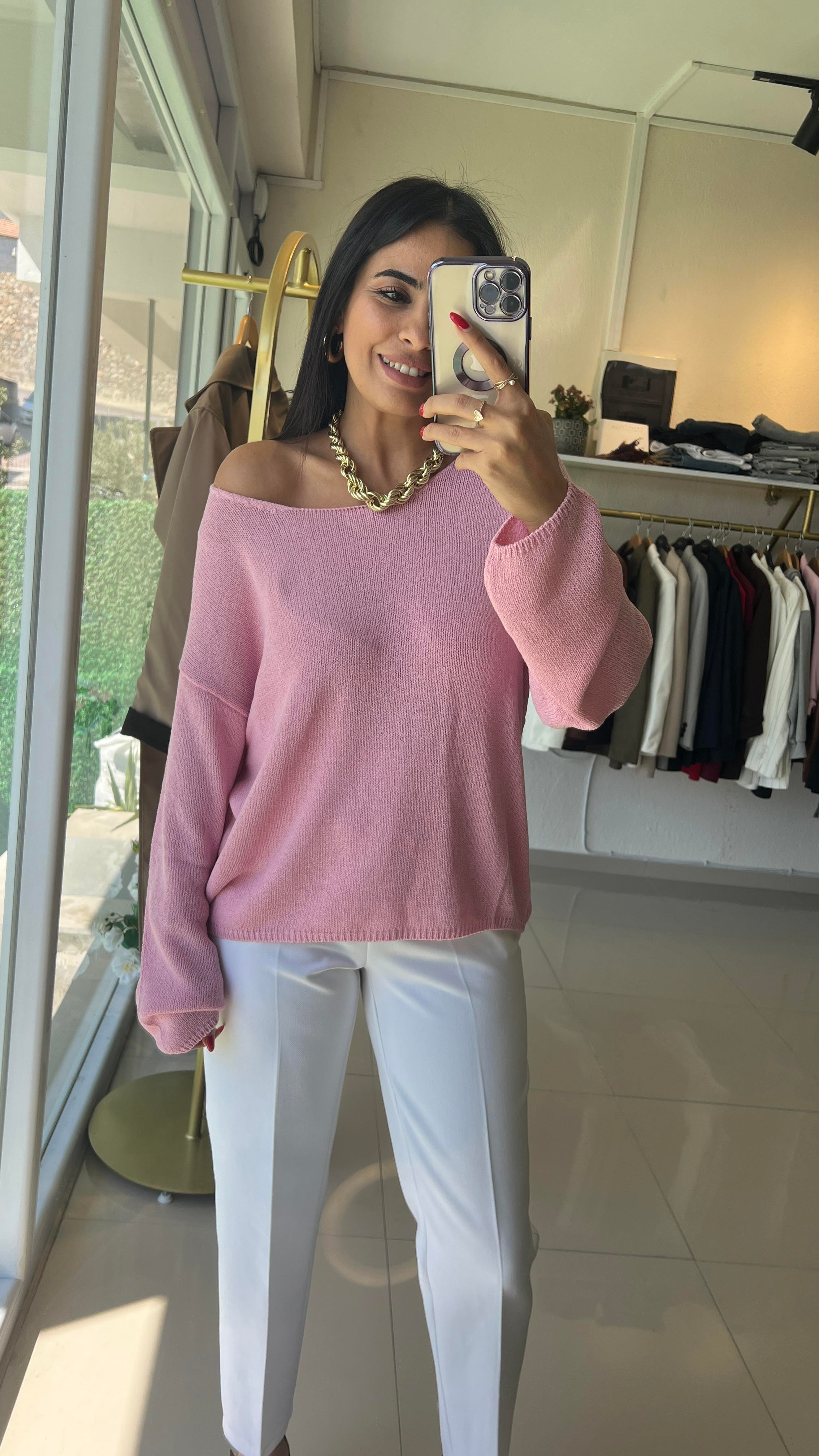 Oval Yaka Yumuşak Dokulu Triko Kazak-Pembe 10706