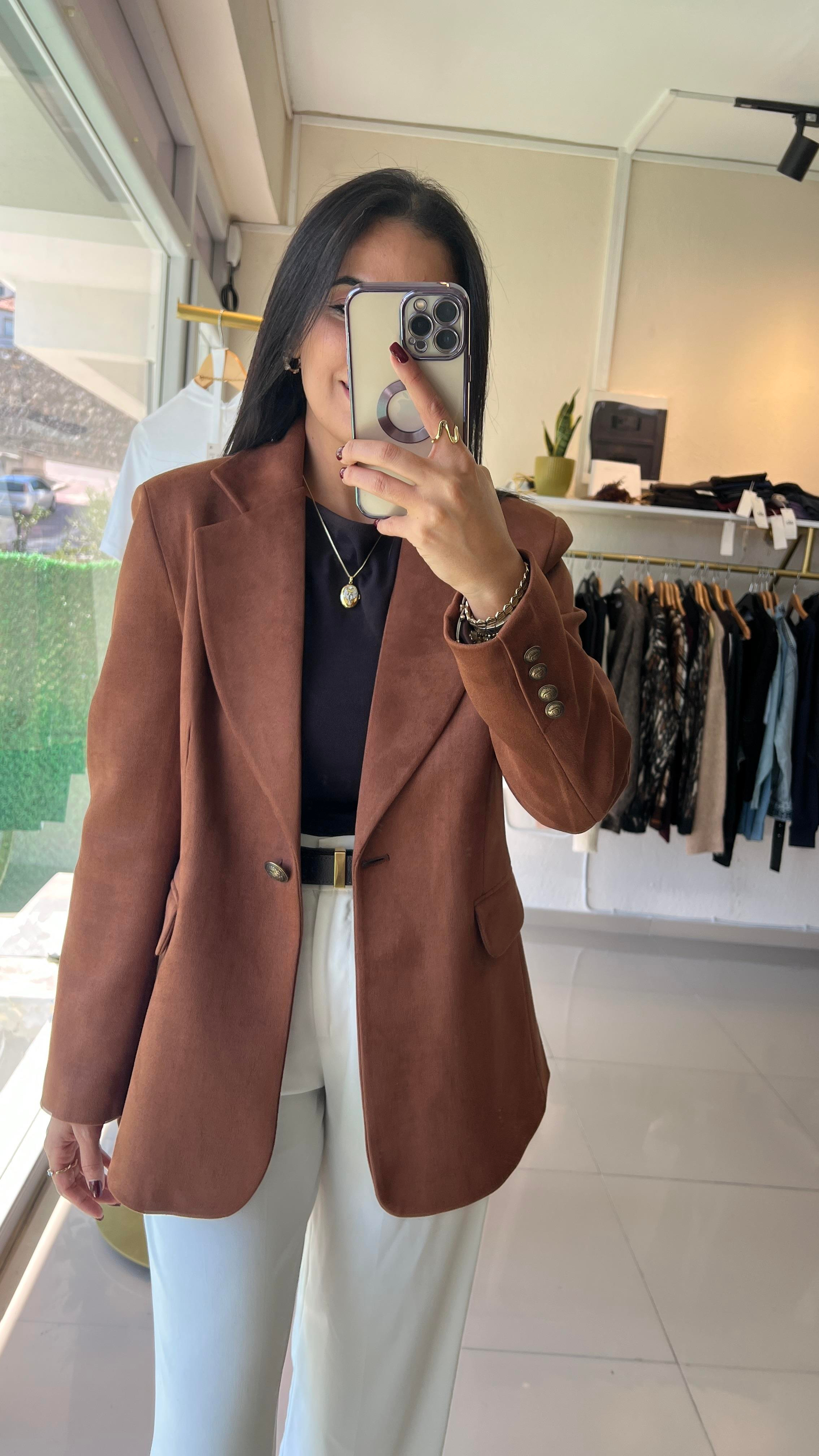 PREMİUM ASTARLI SÜET BLAZER KAHVE