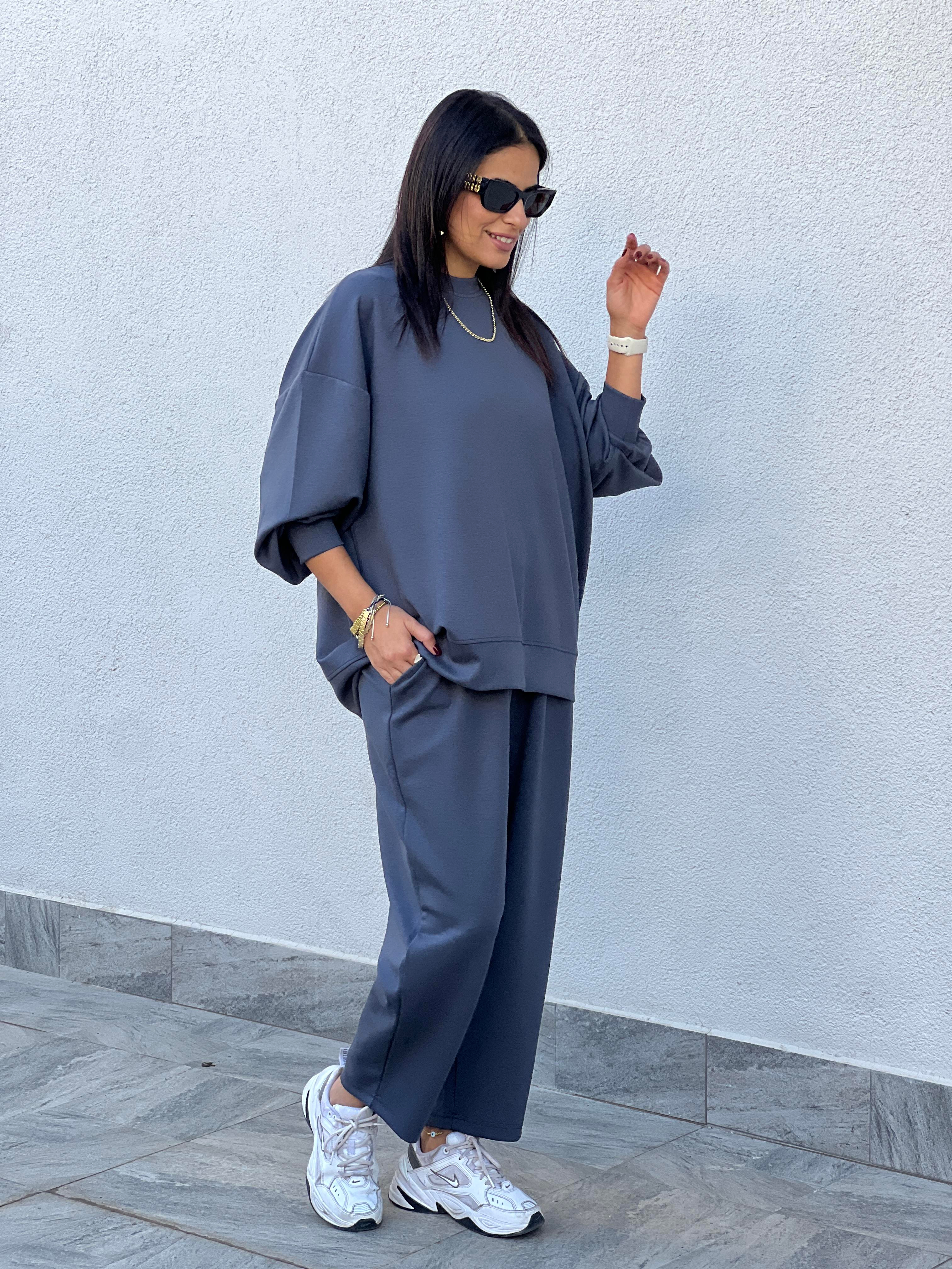 Şalvar Pantolonlu, Modal, Dökümlü İkili Takım - Antrasit 10179