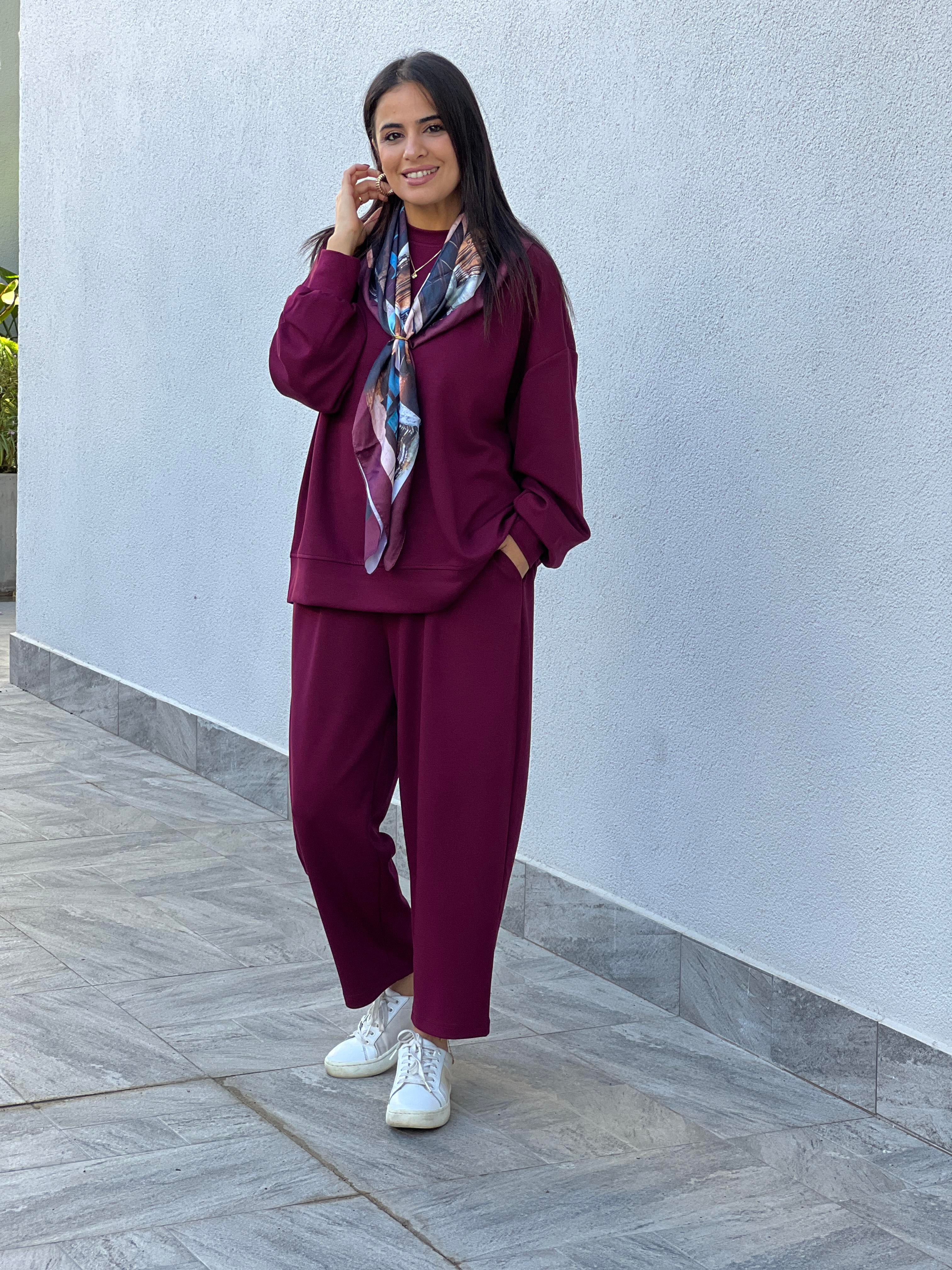Şalvar Pantolonlu, Modal, Dökümlü İkili Takım - Bordo 10179