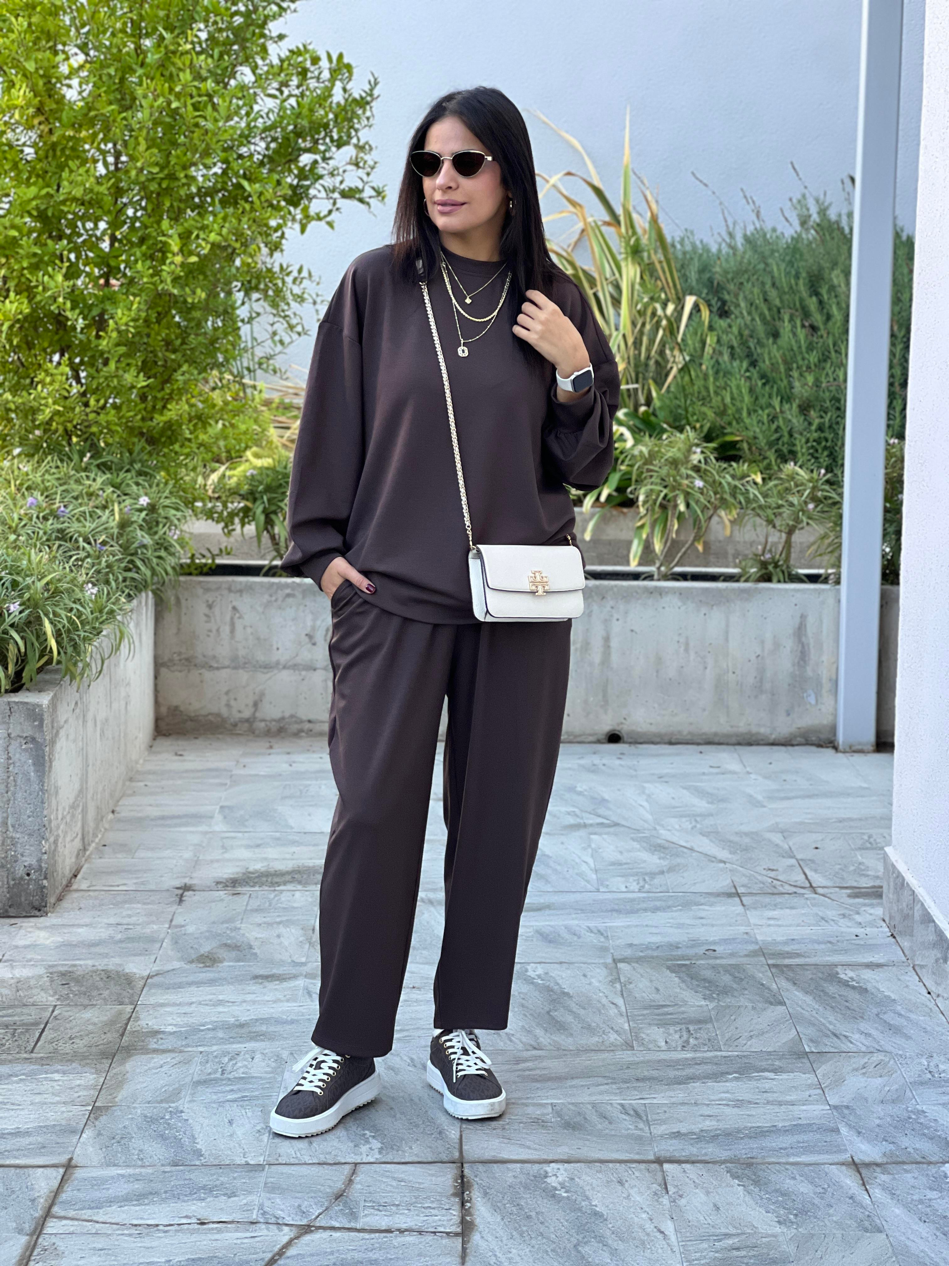 Şalvar Pantolonlu, Modal, Dökümlü İkili Takım - Kahve 10179